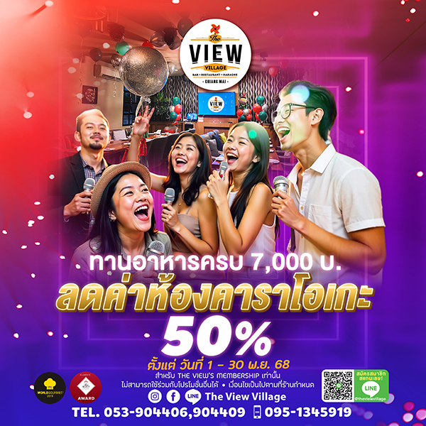 ลูกค้าใช้บริการห้องคาราโอเกะร้าน The View Village ลดทันที่ค่าห้อง 50% เมื่อทานอาหารครบ 7,000 บาท
