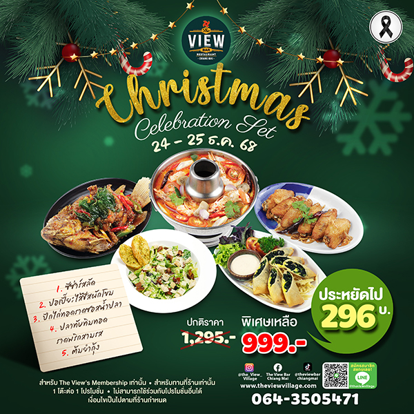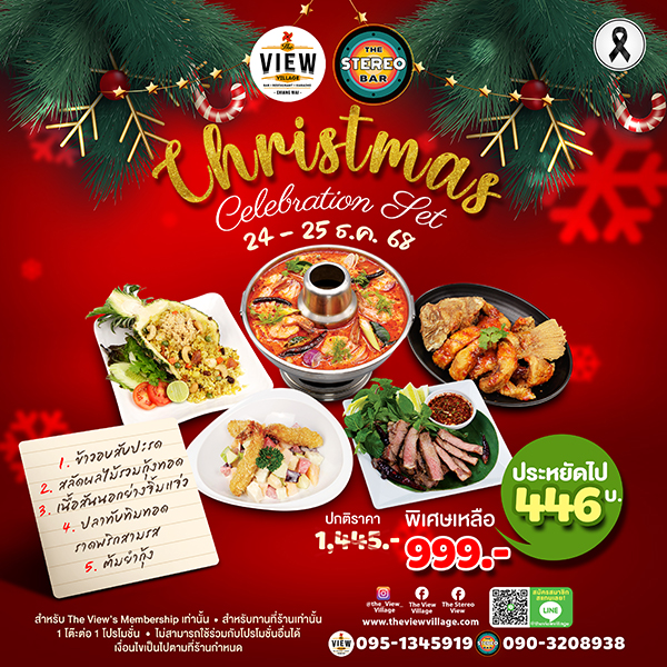 ฉลองเทศกาลคริสต์มาสกับ set menu สุดว๊าววววว ในราคาเพียง 999 บาท จากราคา 1,445 บาท วันที่ 24-25 ธ.ค. 68 นี้ ที่ร้าน The View Village และ ร้าน The Stereo Bar [แม่เหียะ]