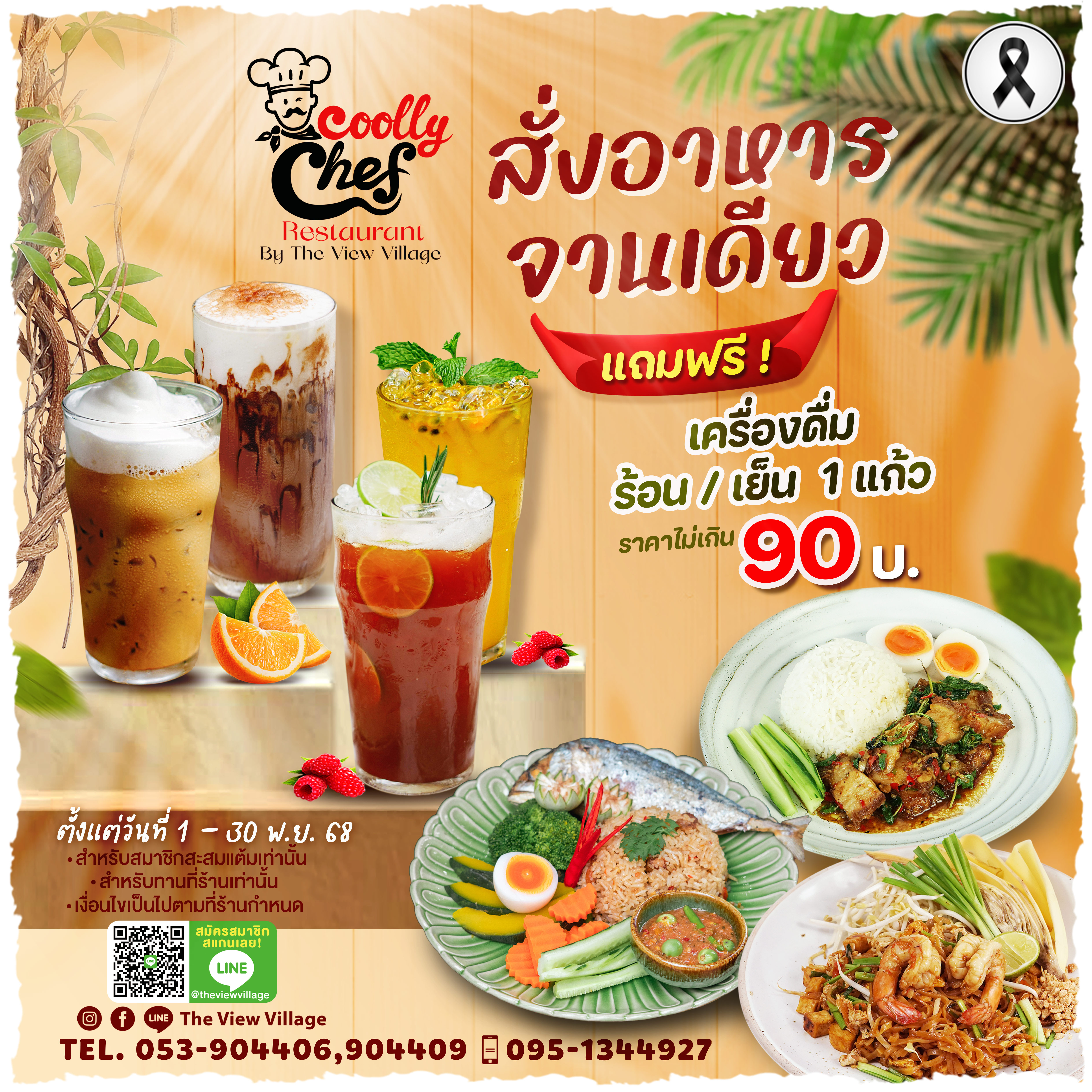 ลูกค้าสั่งเมนูอาหารจานเดียว เลือกรับฟรีเครื่องดื่ม ร้อน/เย็น ราคาไม่เกิน 90 บาท ทันที 1 แก้ว